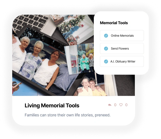 Create Memorials and Obituaries for at-need and pre-need families